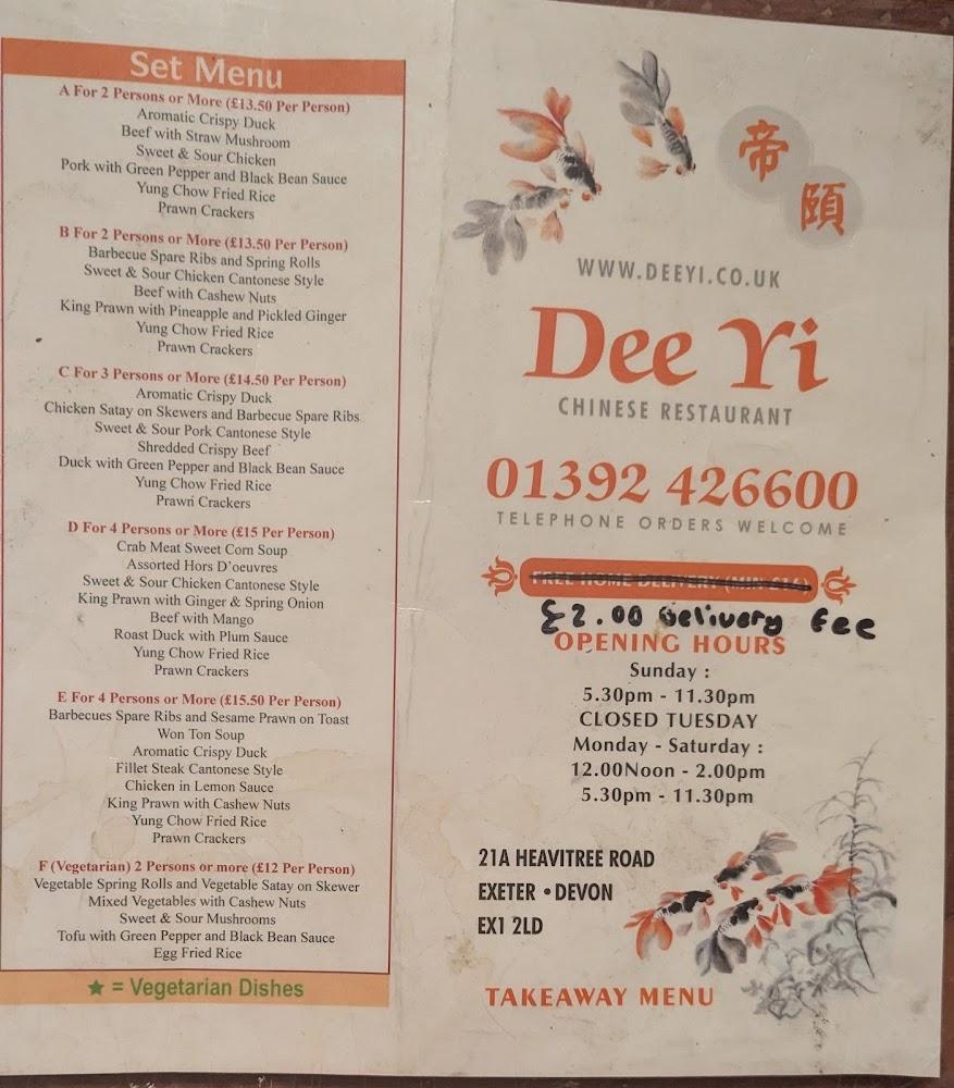 Located at 21A Heavitree Rd, Exeter, Dee Yi blends effortlessly into the community’s fabric. This locale is easily accessible, featuring a wheelchair-friendly entrance and nearby paid parking. The restaurant creates a cozy, casual environment that invites both familiar faces and newcomers to gather and share meals. Visitors often find themselves returning for the superb mix of flavor and service provided by the friendly staff. The menu also includes an impressive range of dishes, ensuring there’s something for everyone. Dee Yi shines brightly as a superb choice for diverse dining experiences, from brunch with friends to evening feasts with family.